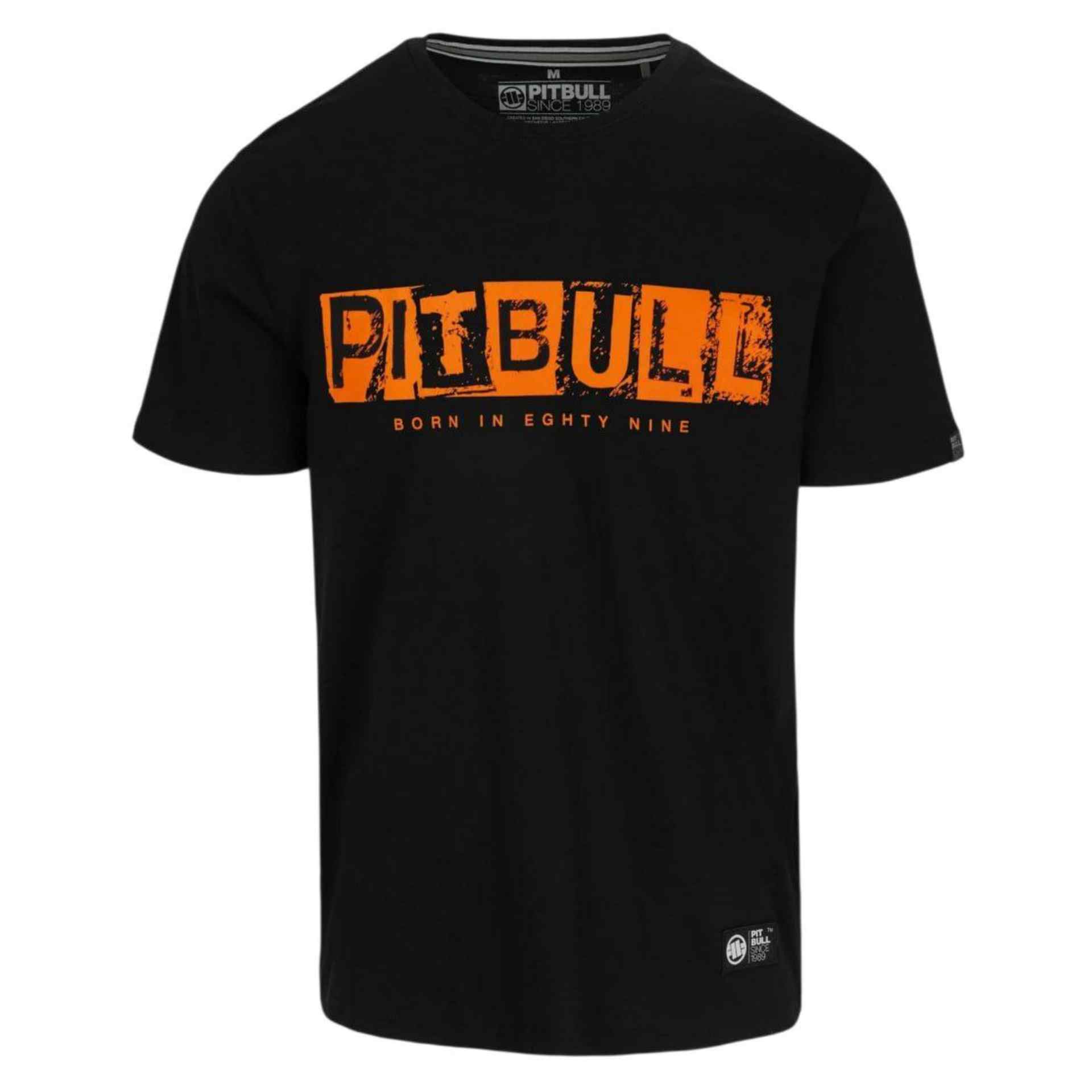 Das Pitbull West Coast T-Shirt „Blacky“ setzt auf einen kraftvollen Look mit markanten Details. Auf der Vorderseite zeigt sich ein auffälliger Frontprint mit dem Schriftzug PITBULL – Born in Eighty Nine in kräftigem Orange. Der Rückendruck macht das Shirt zu einem absoluten Highlight: Ein detailreich gezeichneter Pitbull-Kopf mit Ketten- und Totenkopf-Elementen, kombiniert mit den Schriftzügen San Diego und Southern California.