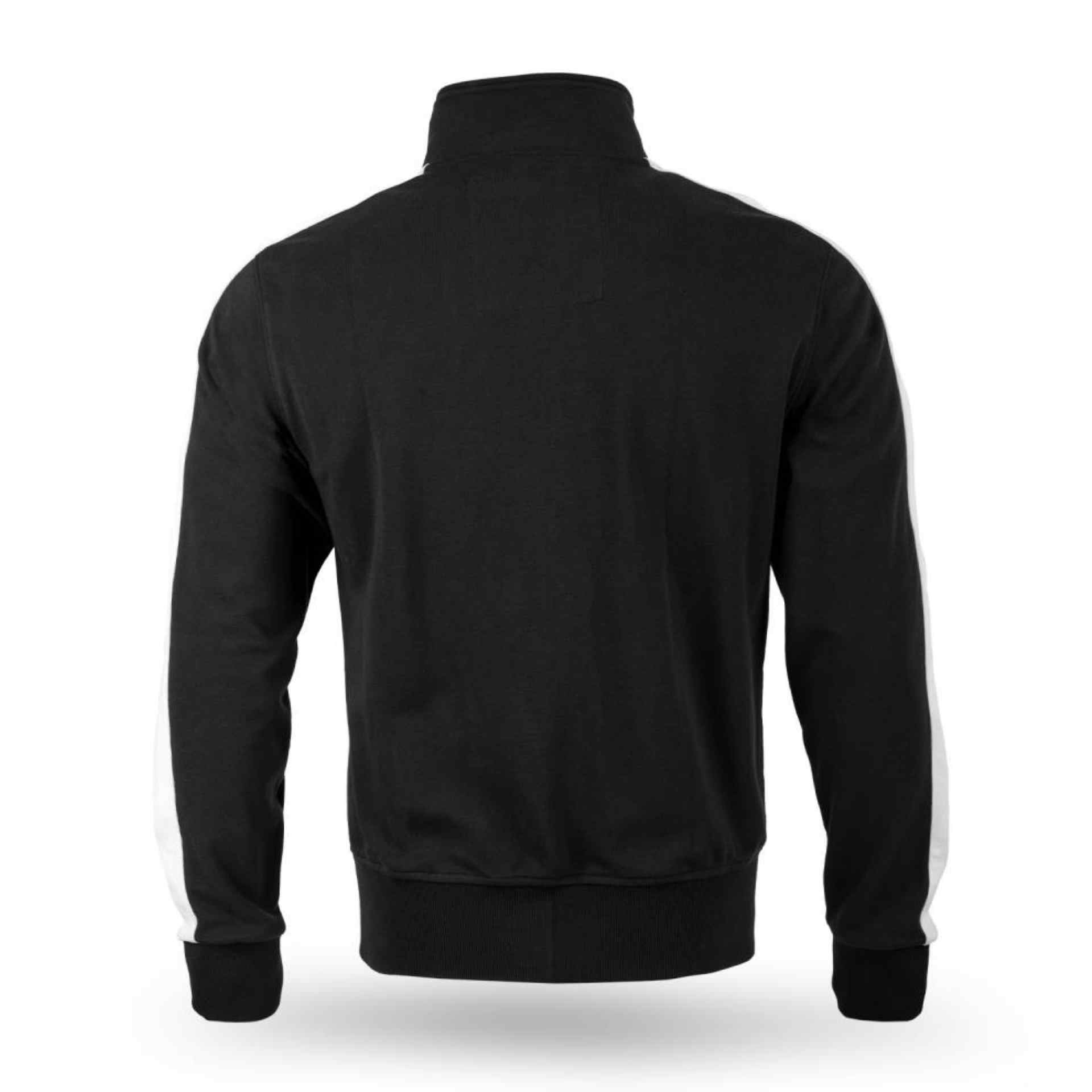 Thor Steinar Sweatjacke mit ordentlichem Stehkragen und abgesetzten Kontraststreifen an den Ärmeln. Ein kleines Brustwappen mit dem alten TS-Logo sowie seitliche Einschubtaschen mit Reißverschluss runden das Design ab.
