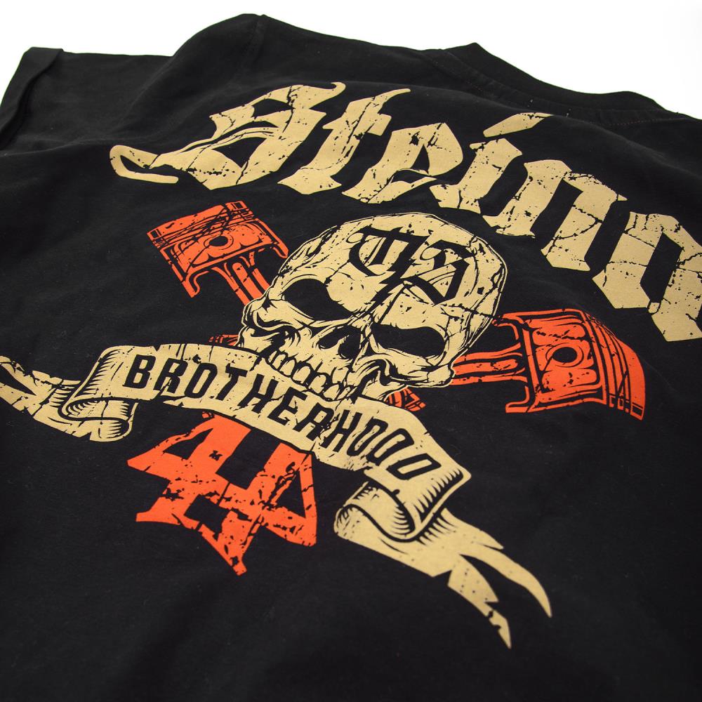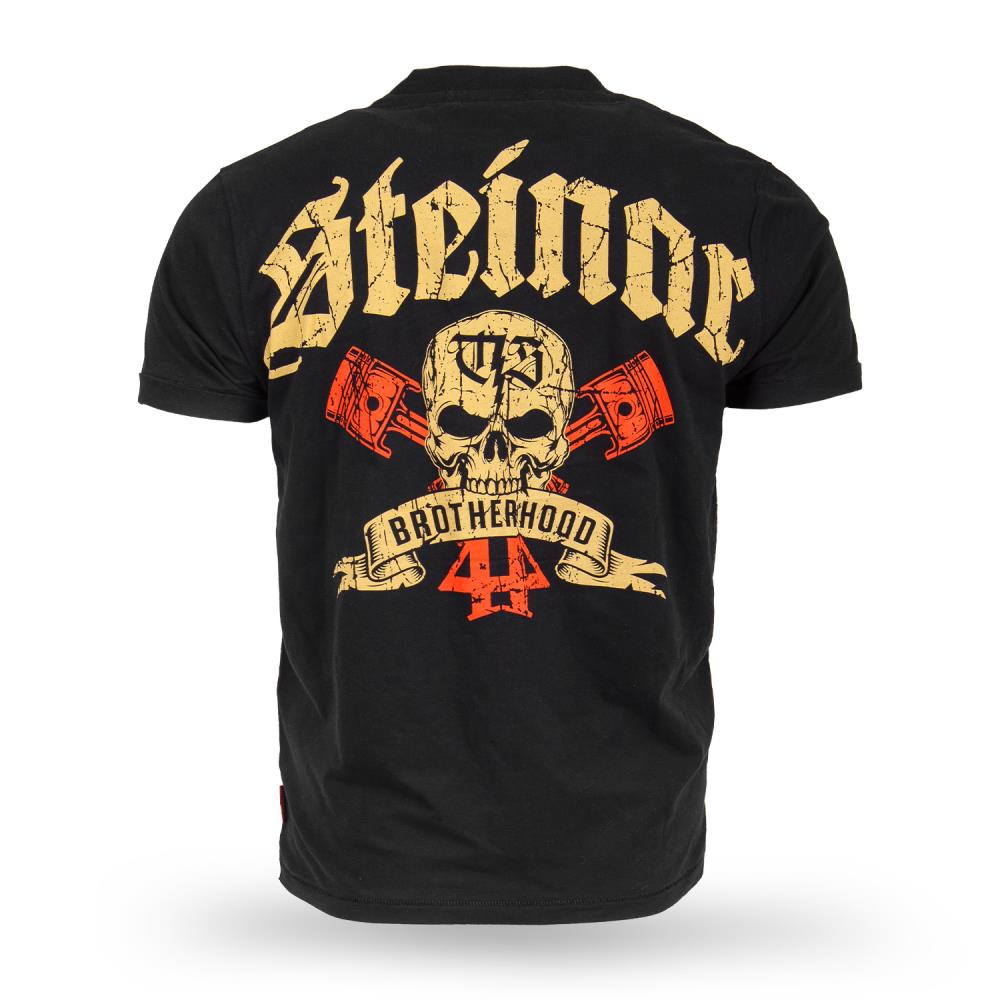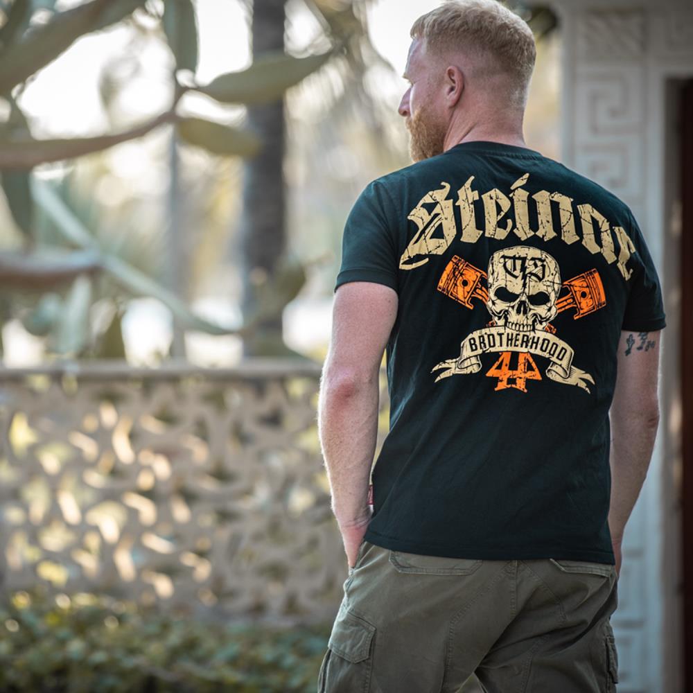 Thor Steinar "Brotherhood"-Shirt mit plakativem Rückendruck und kleinem Stick auf der Brust.
