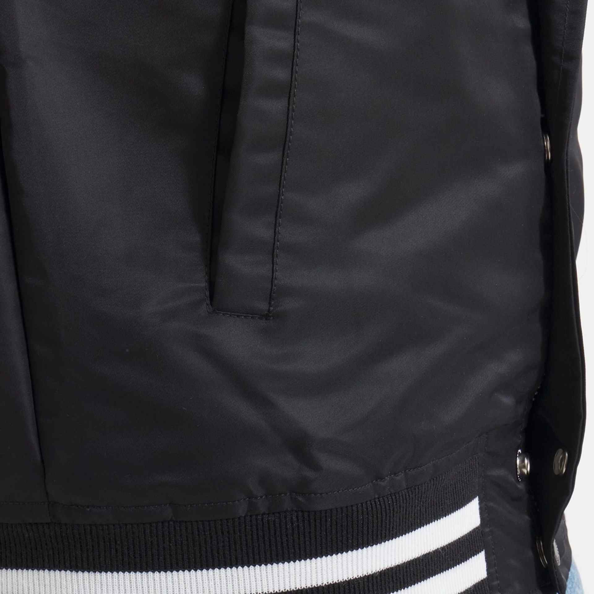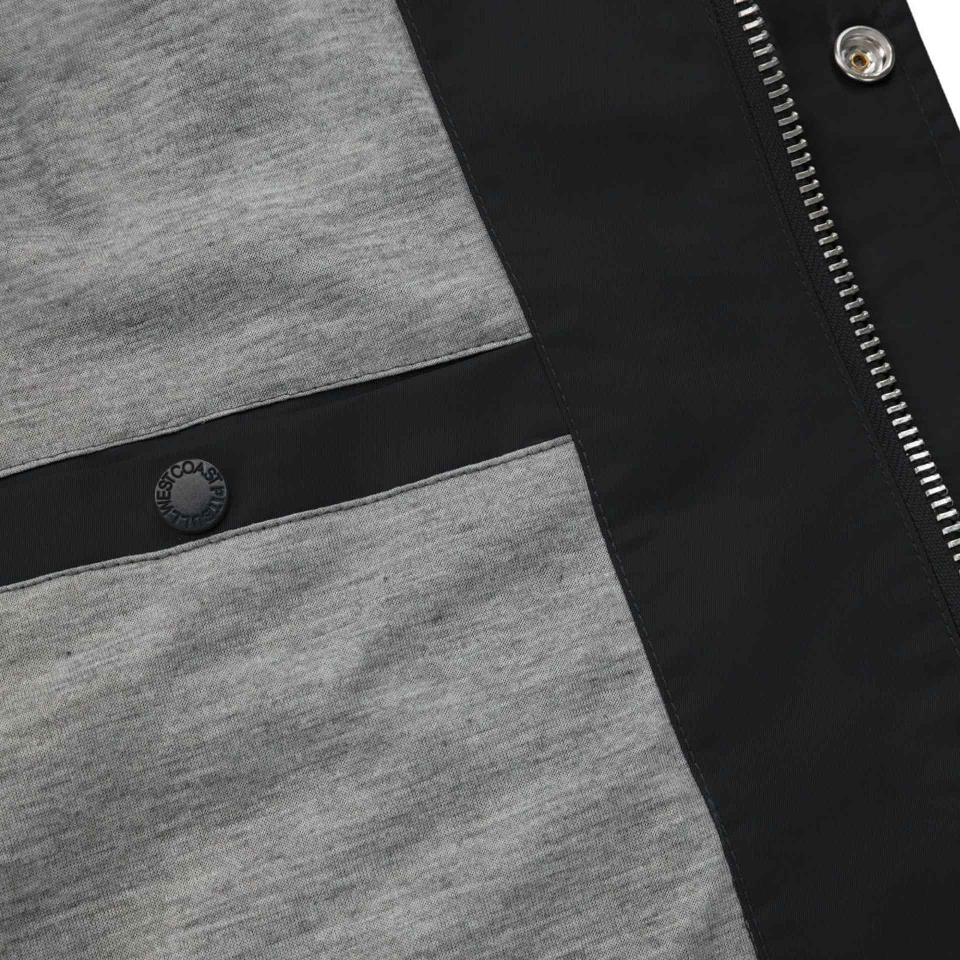 Der Verschluss besteht aus einem stabilen Metallreißverschluss, der zusätzlich durch eine Abdeckleiste mit Druckknöpfen gesichert wird. Zwei seitliche Außentaschen sowie eine praktische Innentasche mit Druckknopf bieten ausreichend Stauraum für persönliche Gegenstände. Gerippte Bündchen an Ärmeln und Saum gewährleisten eine perfekte Passform und verhindern das Eindringen von Wind.