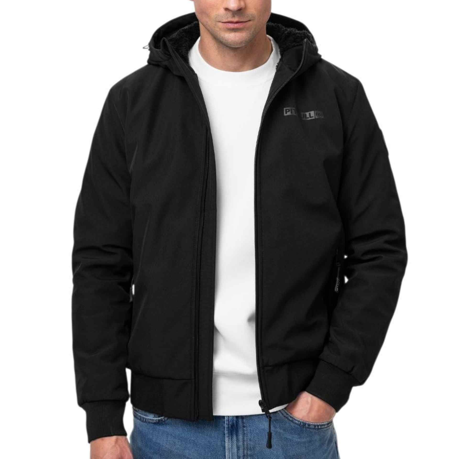 Winter-Softshell-Kapuzenjacke von Pit Bull Westcoast mit wärmendem Sherpa-Innenfleece. Die Seitentaschen sind mit Reißverschluss versehen und wie auch der Frontreißverschluss wasserdicht. Silikonpatch auf dem linken Ärmel sowie Ton-in-Ton-Schriftzüge auf Kapuze und Brust.