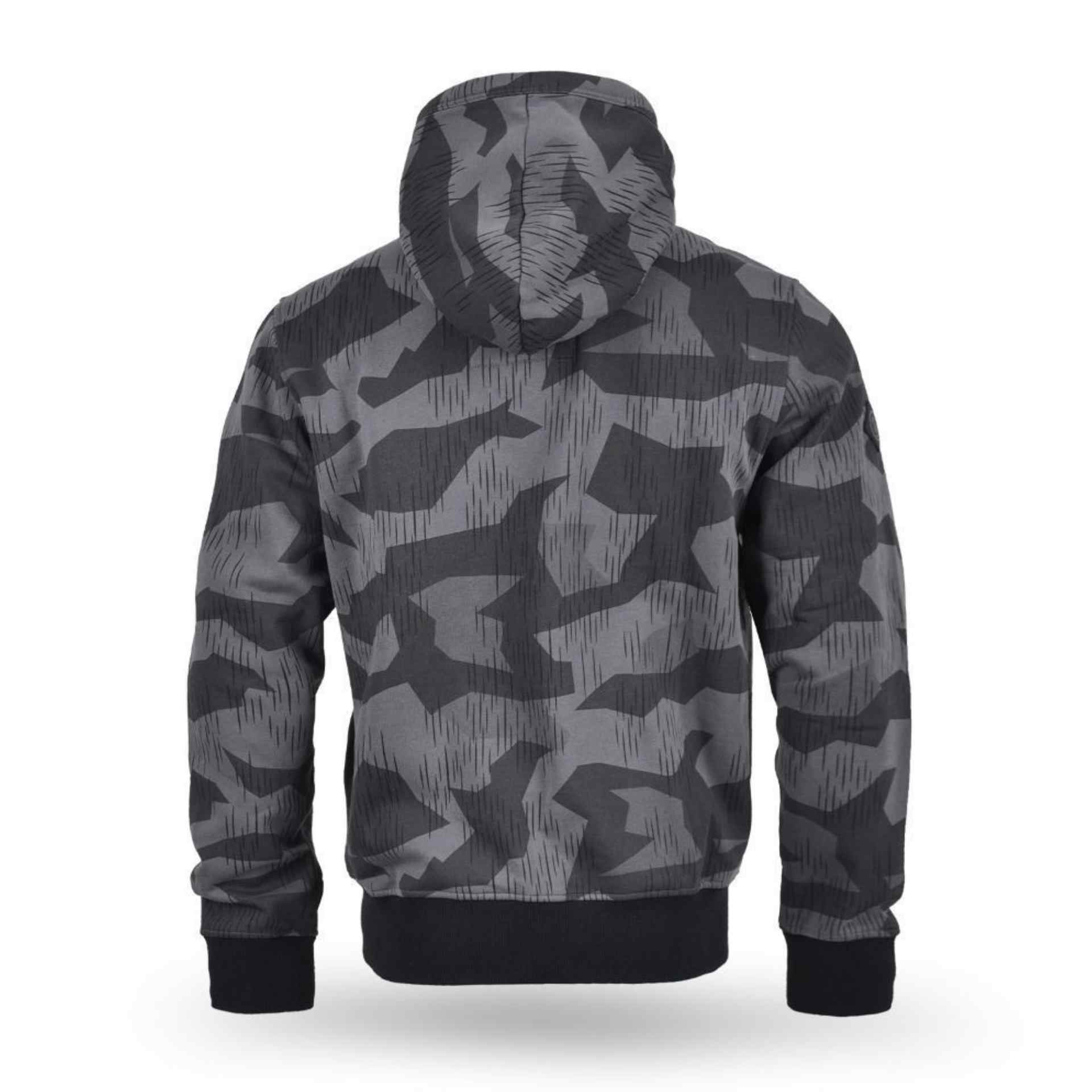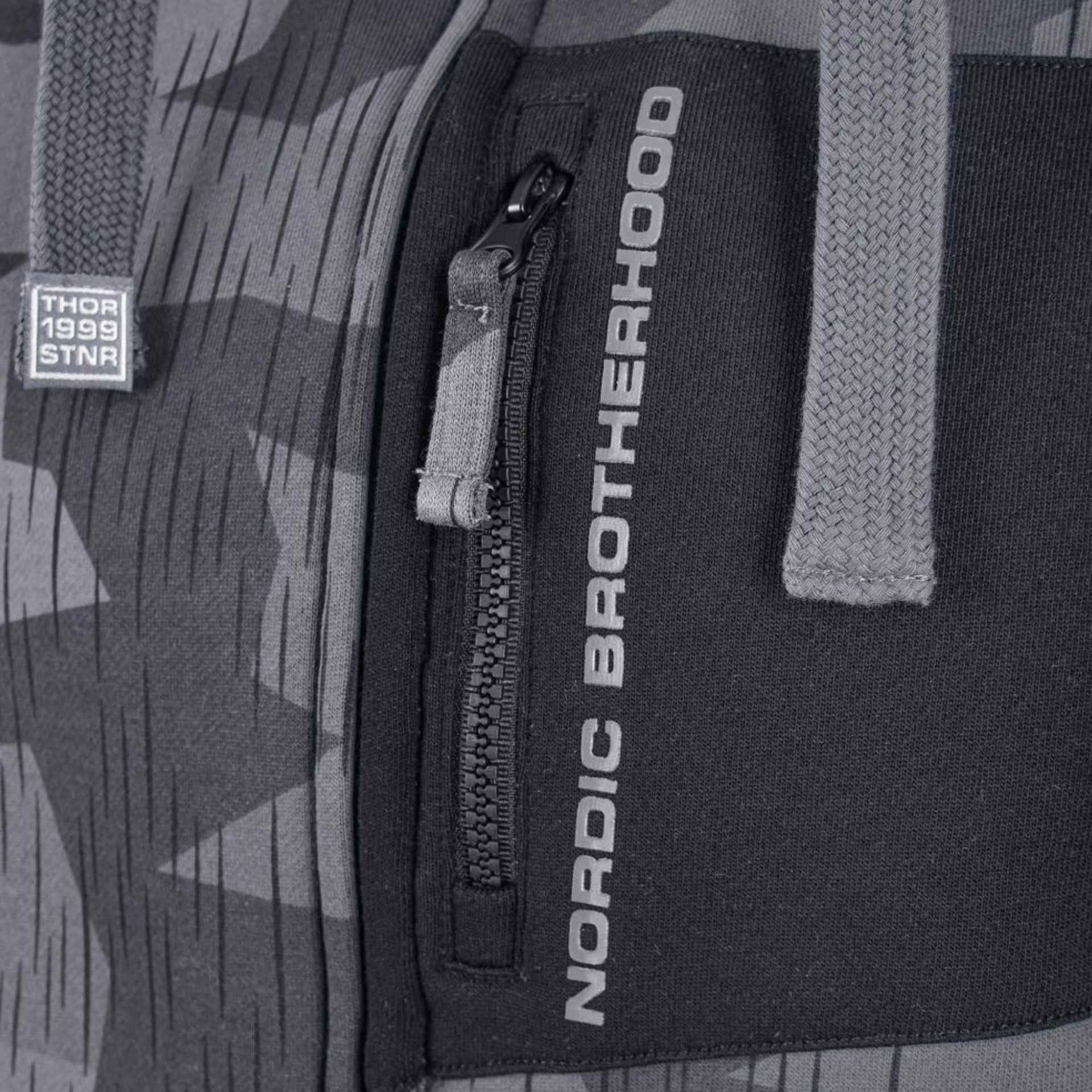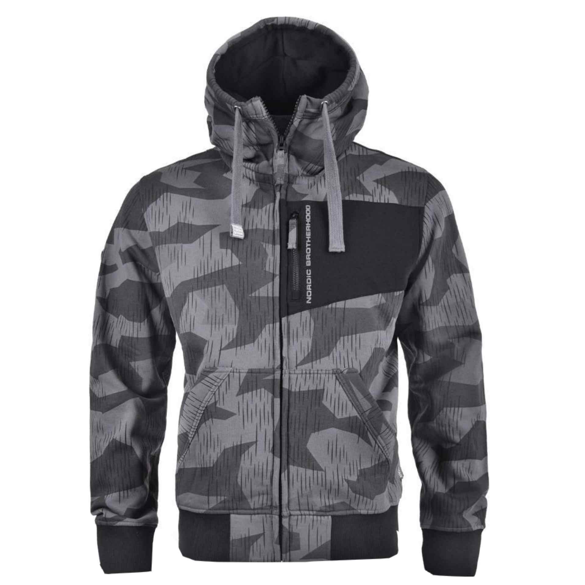Die Thor Steinar Kapuzenjacke überzeugt kommt in  Camo-Look und durchdachten Details. Das absolute Highlight: die integrierte Maske, die sich in Sekunden von der Rückseite der Kapuze nach vorne ziehen lässt. Ausgestattet mit einer Brusttasche mit Reißverschluss, zwei Einschubtaschen am Bauch, einem hochschließenden Reißverschluss und einem Gummipatch am rechten Ärmel. Ja, das Teil hat seinen Preis, aber der Tragekomfort ist einfach unschlagbar.