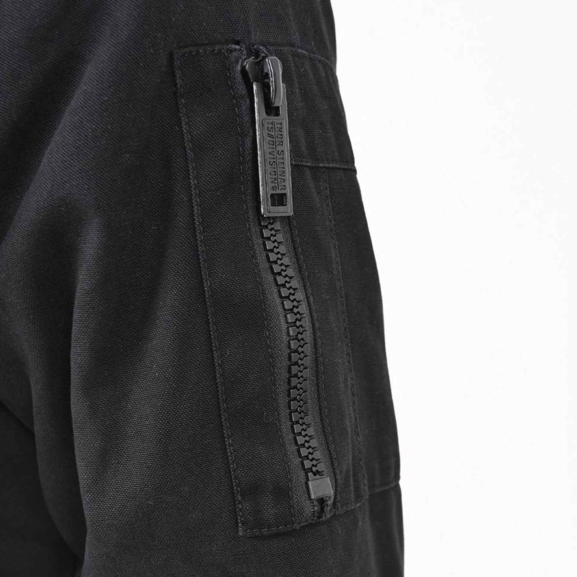 Diese Thor Steinar Winterjacke überzeugt mit einem großen, plakativen Print auf der Rückseite und der Kapuze sowie einem dezent gestickten Logo auf der Brust. Seitliche Einschubtaschen und eine typische Ärmeltasche mit Reißverschluss am Oberarm, inspiriert von klassischen Bomberjacken,bieten praktischen Stauraum.